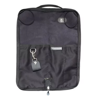 3 pockets for drumsticks, and a leather key holder. Vintage black leather.