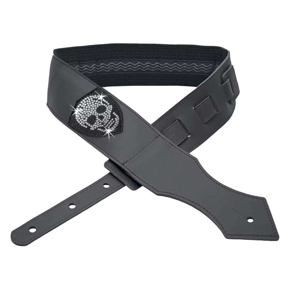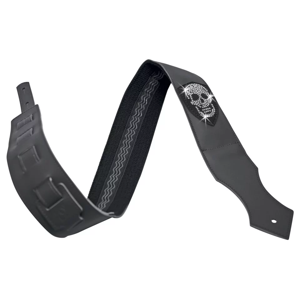 Schwarzes mattes Leder, gefüttert mit Polarfleece + Baumwollschwamm + Antirutschband, mit logo Totenkopf Swarovski®-Kristallen.