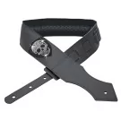 Für alle Gitarren geeignet. Mattschwarzes Leder mit mattbraunem Lederstreifen. Gefüttert mit Fleece + Baumwollschwamm + Antirutschband.