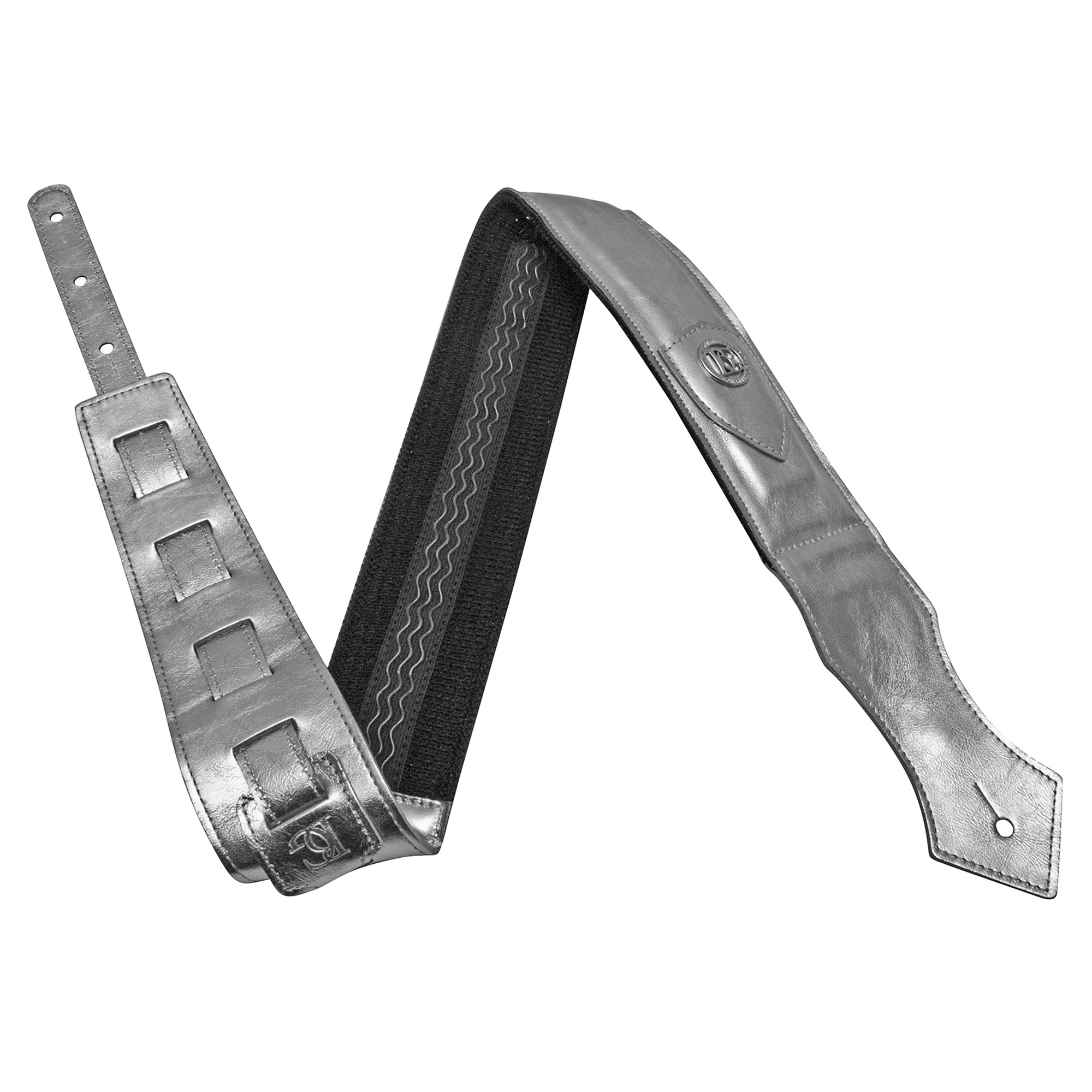 Bass and electric guitar "Star" strap. Silver-print leather with polar fleece lining, cotton padding, and a non-slip ribbon.