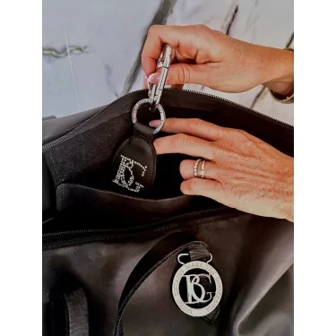 Nickel-plated metal belt loop keychain with BG France logo design.