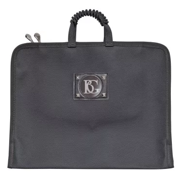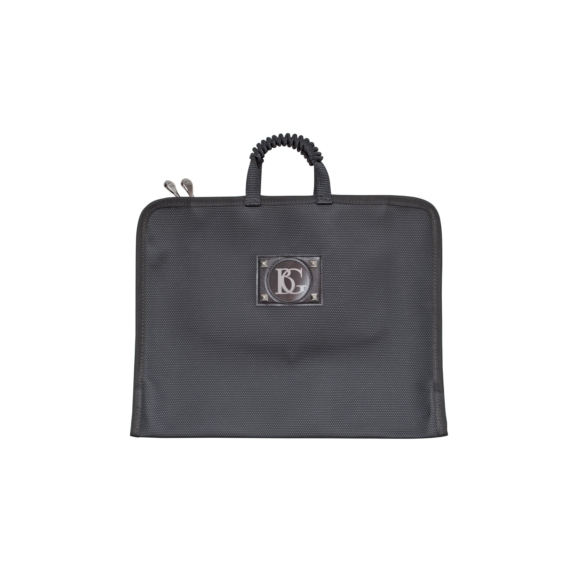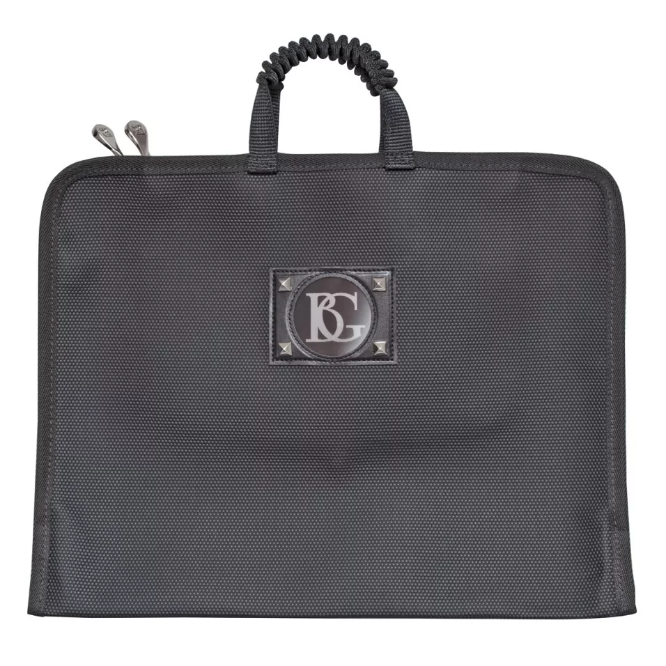 Its sleek black design, paired with a smooth BG-branded zipper, offers understated sophistication.