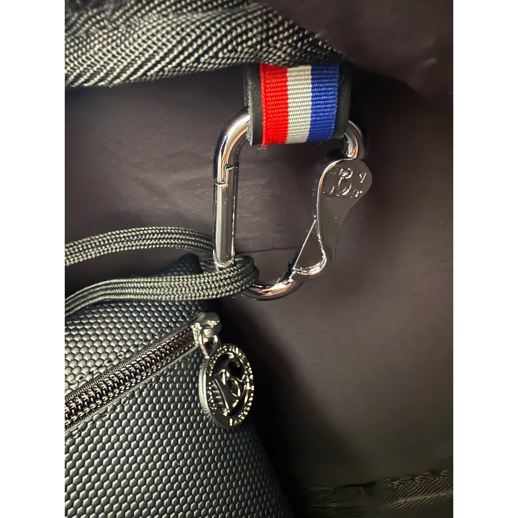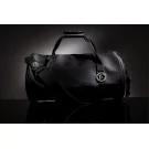 Can be carried by hand thanks to its two nylon handles, leather flap with snap button to secure the handles.