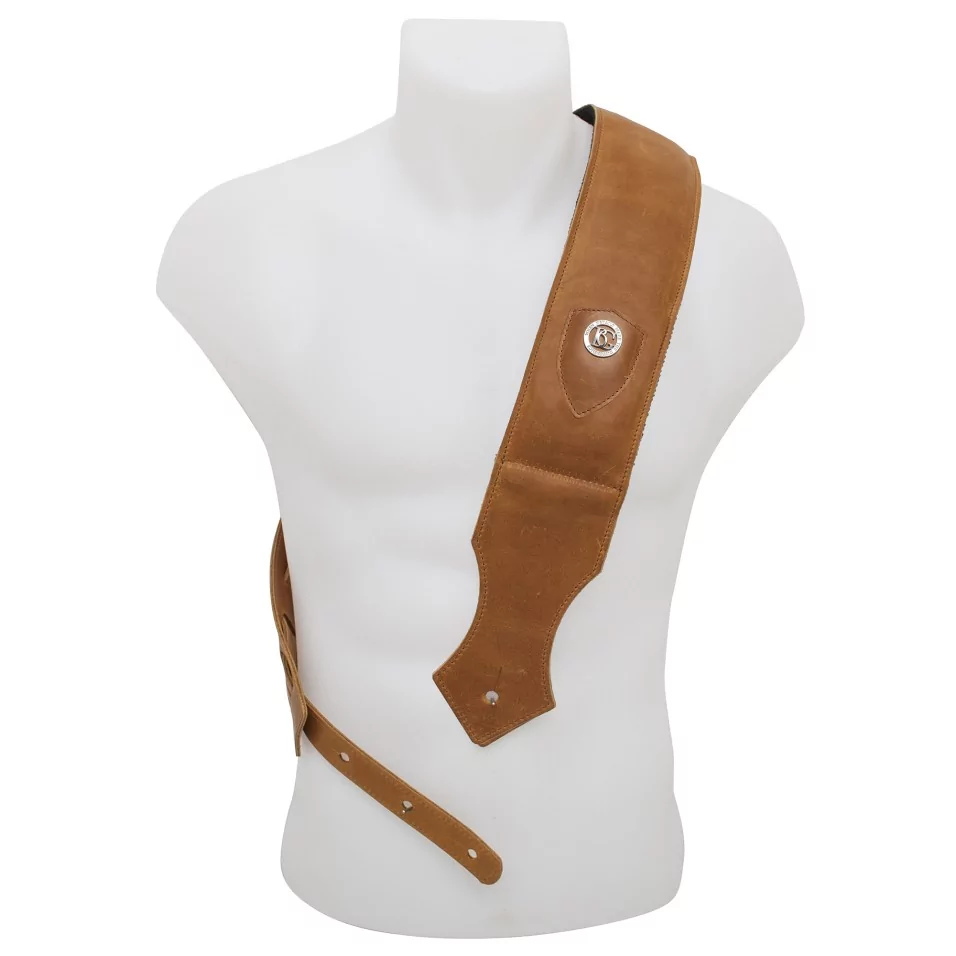 For electric guitars and basses. Vintage Camel Leather lined with fleece + cotton sponge + anti-slip strip.