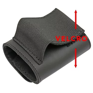 3 bolsillos para baquetas, 2 bolsillos con cremallera y un llavero de cuero. Tejido reforzado negro.