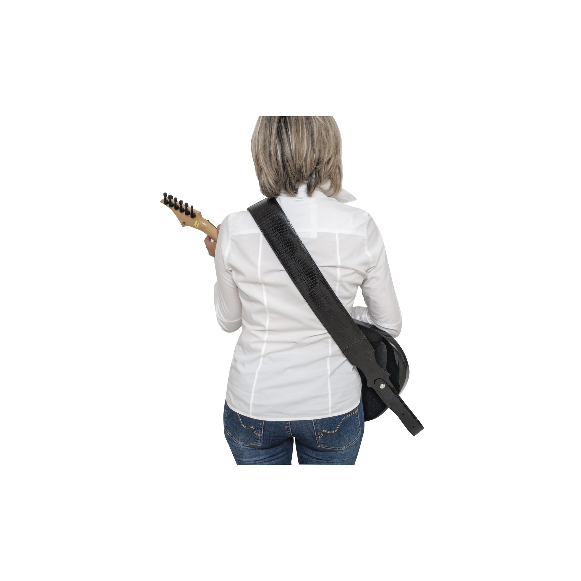 Con sistema de enganche para correa de guitarra o cinturón, incluye una correa de repuesto.