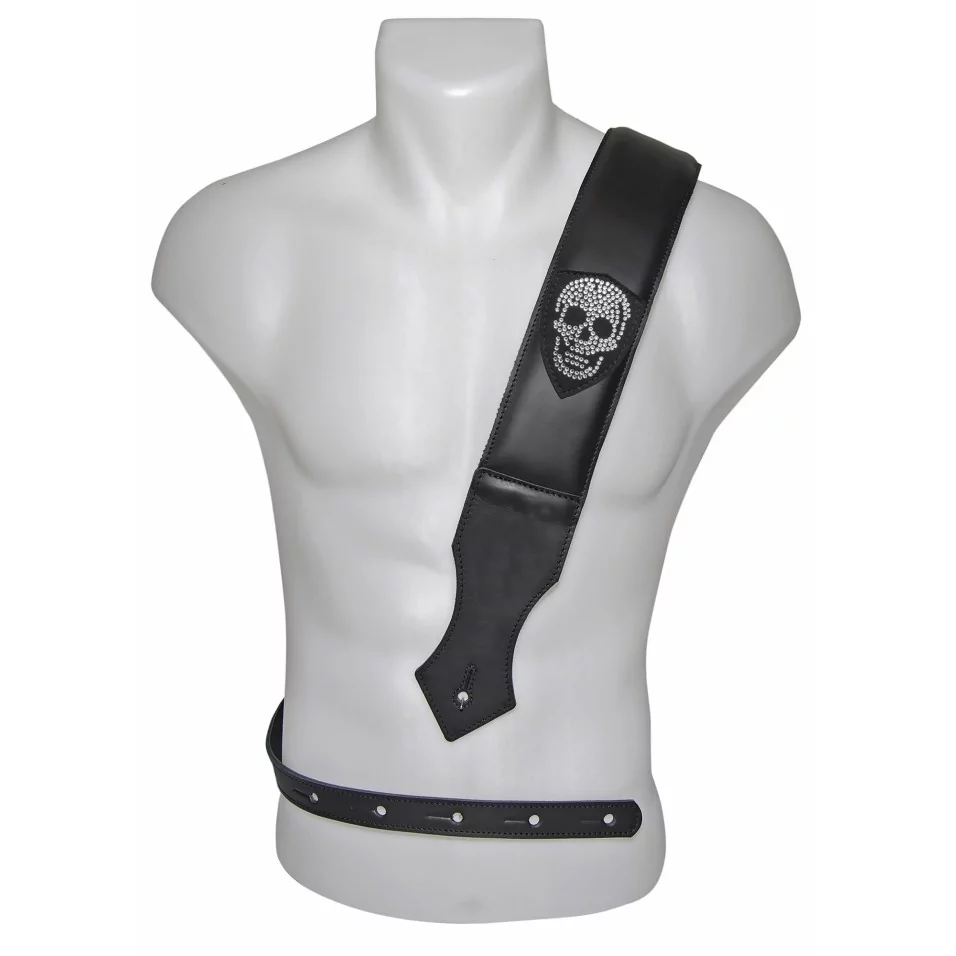 Correa Premium, con logo Calavera  Cristales de Swarovski® Cuero negro con acolchado en lana polar + algodón + banda antideslizante.