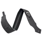 Correa Premium de 1 sola pieza. Cuero negro con acolchado en lana polar + algodón + banda antideslizante. Ajuste rápido para tocar la guitarra o bajo en una posición muy baja.