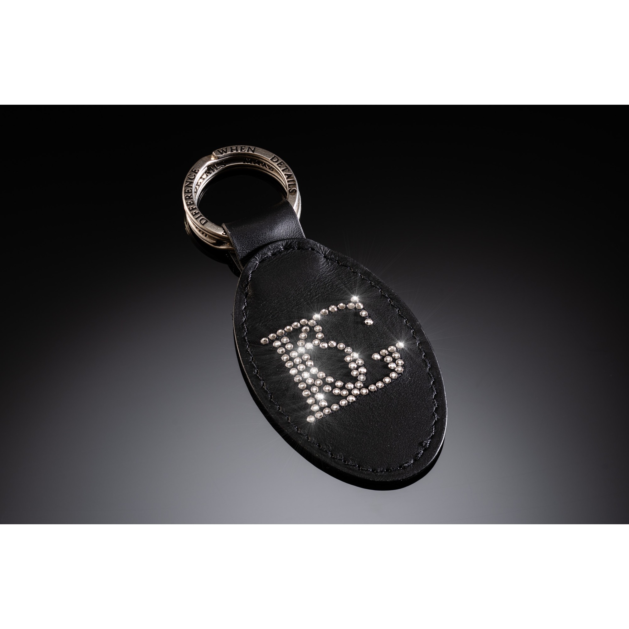 Llavero de metal niquelado para csujección de cinturón con logotipo BG France.