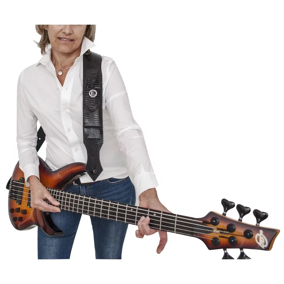 • Courroie Unik en une seule pièce de cuir pour guitares électriques et basses.