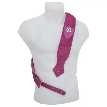 Pour guitares électriques et basses, Cuir rose aspect fourrure  : Doublé de  laine polaire  et  d'éponge coton. Dispose d'une  bande antiglisse. Un gant d'entretien  universel est  inclus. Livré dans son  Sac à dos déperlant.