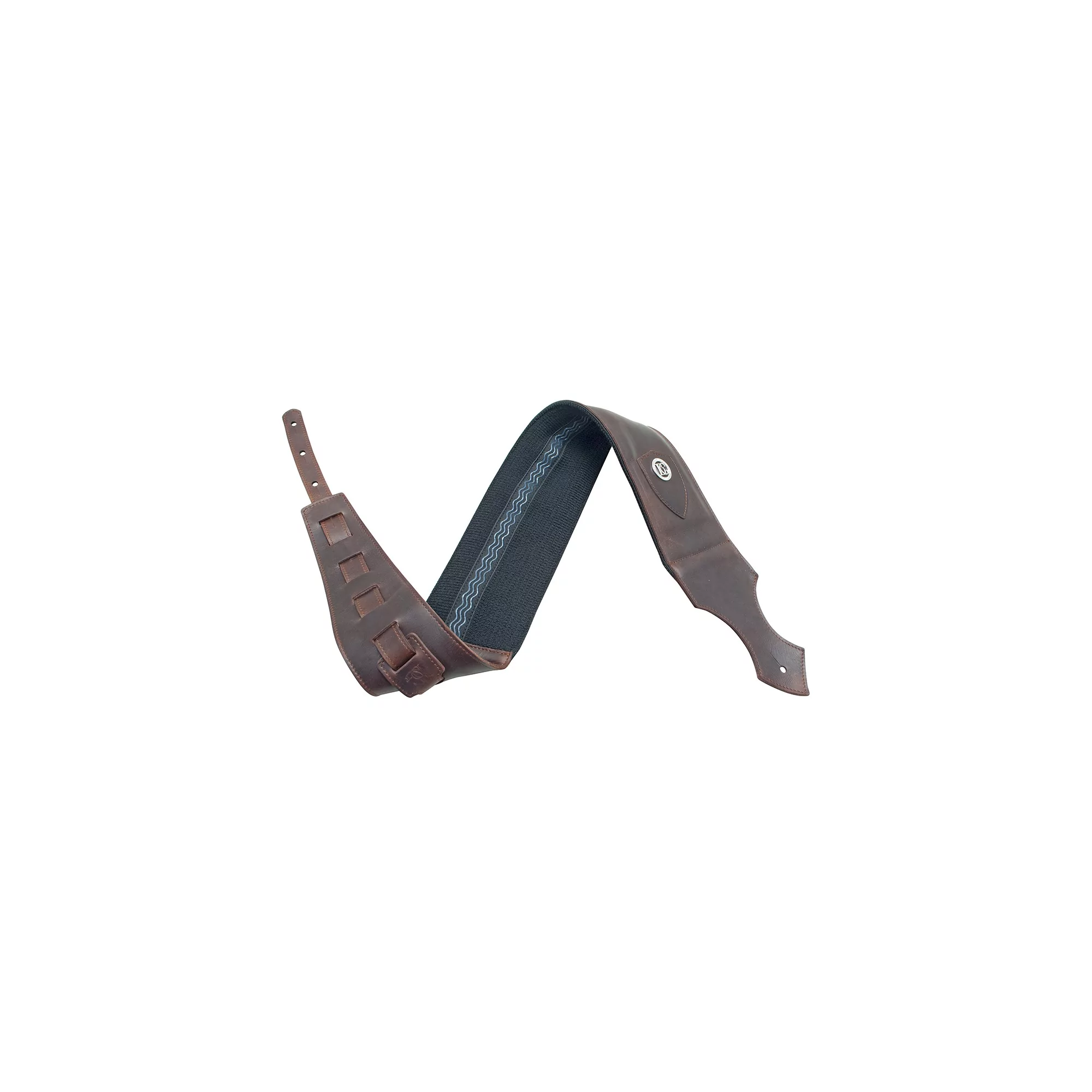Pour guitares électriques et basses. Cuir marron Vintage doublé de laine polaire + éponge coton + bande antiglisse.